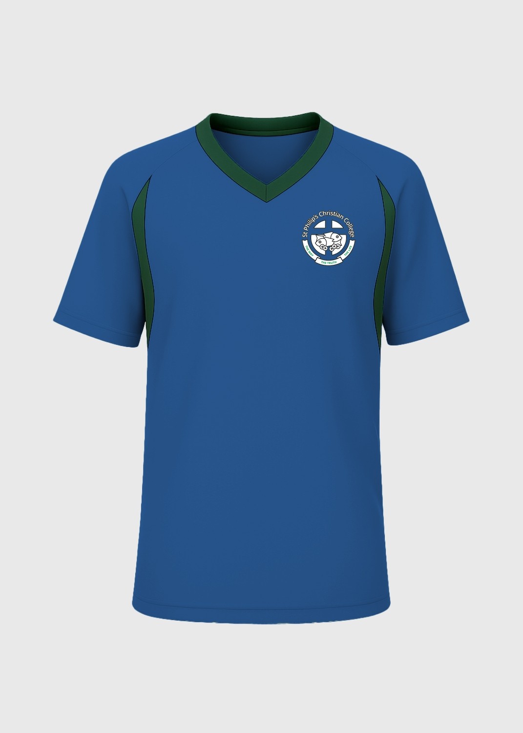 House Tee Blue worn by the students of St Philip's Christian College Port Stephens in Yrs 3 and up for Sports Carnivals.